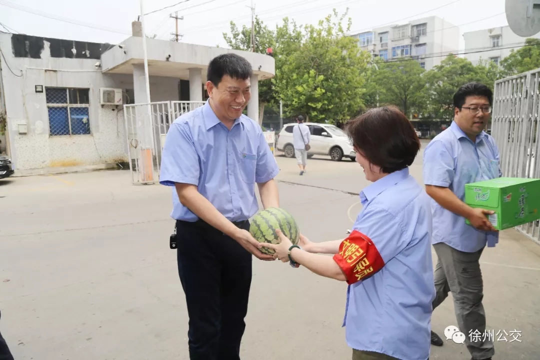 為切實(shí)關(guān)心關(guān)愛堅(jiān)守一線的公交員工,徐州公交認(rèn)真開展“夏日送清涼”活動(dòng),7月22日上午11:45,領(lǐng)導(dǎo)班子分4組深入站臺(tái)、調(diào)度室、修理車間等17處基層一線,為奮戰(zhàn)一線、堅(jiān)守崗位的員工送上涼茶、西瓜等清涼物資,向冒著高溫酷暑、辛勤工作的一線員工表示敬意和慰問,叮囑他們落實(shí)好各項(xiàng)防暑降溫措施,確保在高溫環(huán)境下市民能正常清涼出行。