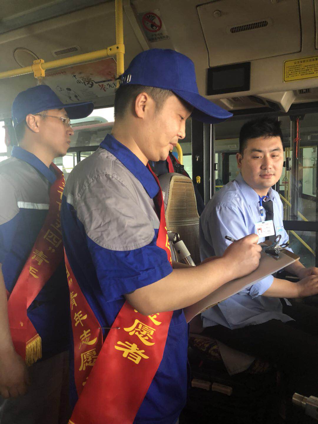 47名公交青年職工身披紅色綬帶,分組來到民樂園、風華園、惠民小區(qū)、高鐵、淮西客運站等居民小區(qū)、站臺,發(fā)放《公交乘車指南》,邀請熱心乘客填寫《乘客滿意度調(diào)查表》,傾聽市民的意見和建議。同時,幫助市民安裝手機“掌上公交”APP,添加徐州公交微信公眾號方便市民及時了解公交信息動態(tài),并贈送紀念品。在高鐵等公交站臺,公交青年看到需要幫助的乘客,還不時去攙扶老年乘客、幫助乘客搬運行李等,在淮西客運站車場,保修青年志愿者幫助駕駛員檢修車輛,傾聽駕駛員意見和建議。