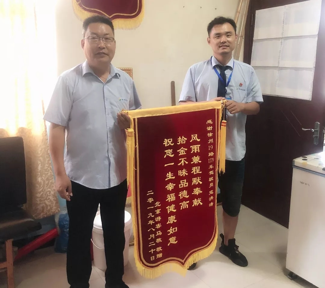 由于該乘客準(zhǔn)備乘車回北京,無(wú)法來(lái)取背包,公司管理人員通過(guò)乘客提供的地址將背包郵寄到北京,乘客非常感動(dòng),特意寄來(lái)一面錦旗表示感謝。