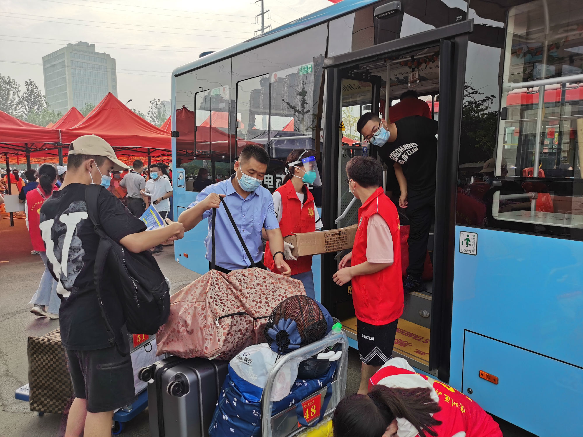 9月23日7時許,城北公司經(jīng)理室?guī)ьI相關(guān)科室人員早早來到學校待命,提前發(fā)放車頭引導標識,并在學校志愿者的配合下,有序地將新生接送至宿舍樓??紤]到新生進校后攜帶行李較多,公司分別在行李集中點、宿舍樓登記點安排管理人員,配合校方維持現(xiàn)場秩序,確保車輛在倒車、行車過程中安全有保障。