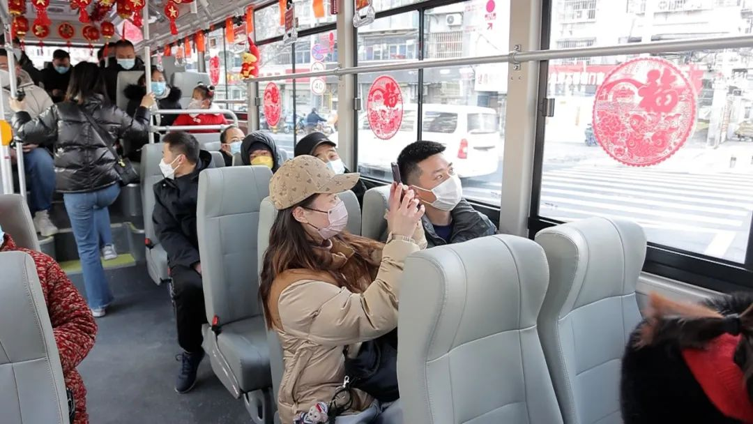 在嶄新的新能源公交車上,市民們不僅可以打卡“年味車廂”,還可以享受提檔升級的軟座。同時,為了方便市民春節(jié)出行購物需求,新車的車身還張貼了“徐州定制公交”“徐州公交民生物流平臺”“徐州公交維修保養(yǎng)中心”小程序等便民服務(wù)“貼士”。